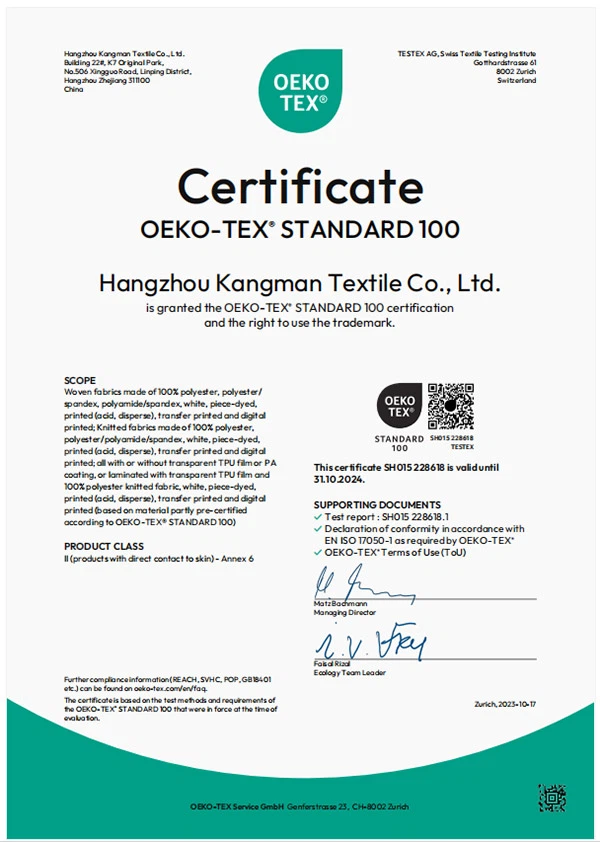 Kangman Textile ima 30 godina bogatog iskustva i istorije štampanja i bojenja tekstila, sa uslugom, kvalitetom, performansama troškova i inovacijom i razvojem proizvoda kao osnovnom konkurentnošću, posvećen je istraživanju i razvoju vrhunskih proizvoda od tkanine. K&M tekstil također ima svoju zavisnu fabriku za bojenje, interni centar za testiranje, odličan tim za istraživanje i razvoj i aktivan prodajni tim, koji može dizajnirati i razvijati tkanine prema zahtjevima kupaca. Istovremeno, imamo kompletan asortiman proizvoda od tkanine, razne besplatne A4 uzorke koje možete izabrati.